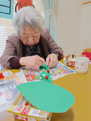 3月に入り、ようやく暖かくなってまいりました。そこで、春の壁面飾りを利用者の皆さんと作ります。今回は水仙のお花と桜の木を花で飾りたいと思います。出来上がりが楽しみですね♪