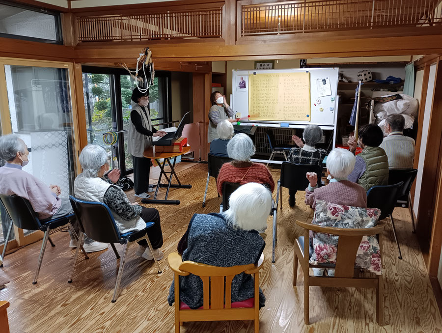 月に一度、ボランティアの方がいらしてピアノの伴奏をしてくださり皆さんで歌を歌います。毎月季節に合った歌を用意してくださり、楽しいお話を交えながらの歌は利用者さんにも大好評です。